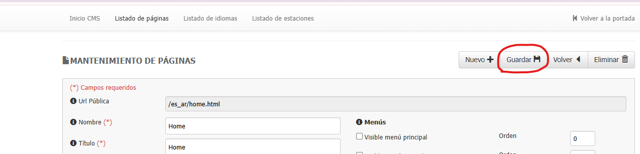 Una vez finalices de introducir la descripción, pulsar el botón de "Guardar" que aparece arriba del todo para guardar los cambios.