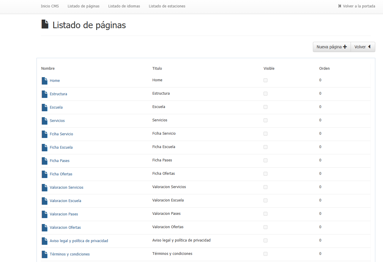 Aquí podréis ver todas las páginas de la web, escogemos una página.